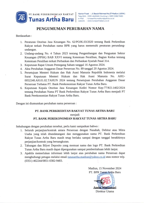 Dapatkan info terkini dari BPR TUNAS ARTHA BARU di inbox email Anda.